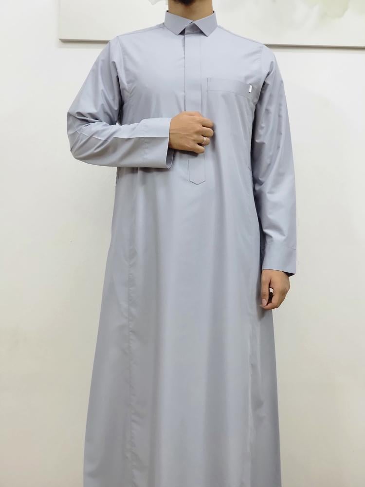 ثوب رصاصي سحاب مخفي قلاب كم سادة رجالي